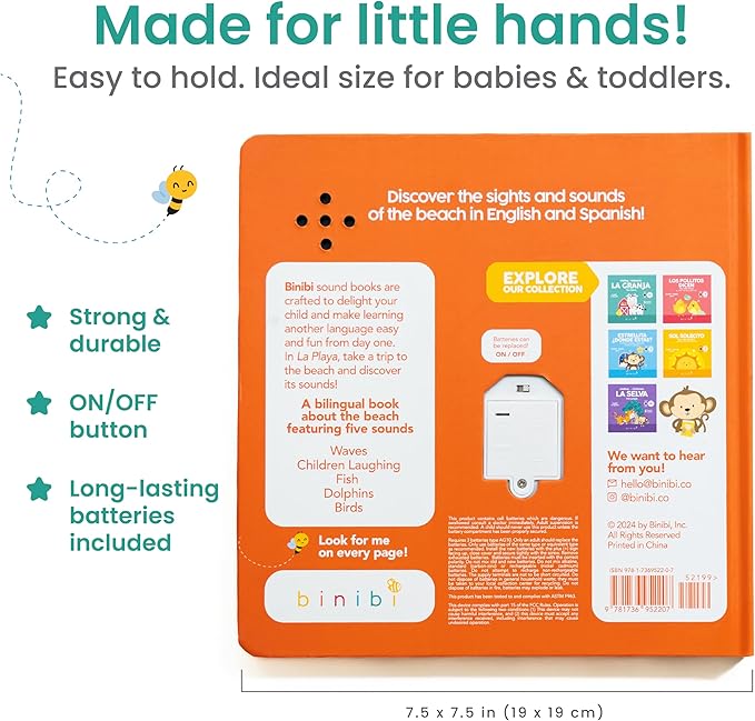 Binibi Spanish Books for Babies & Toddlers 1-3 The Beach Interactive Bilingual Sound Book with Fun Beach Sounds | Bilingual Children's Book | Spanish Learning for Kids