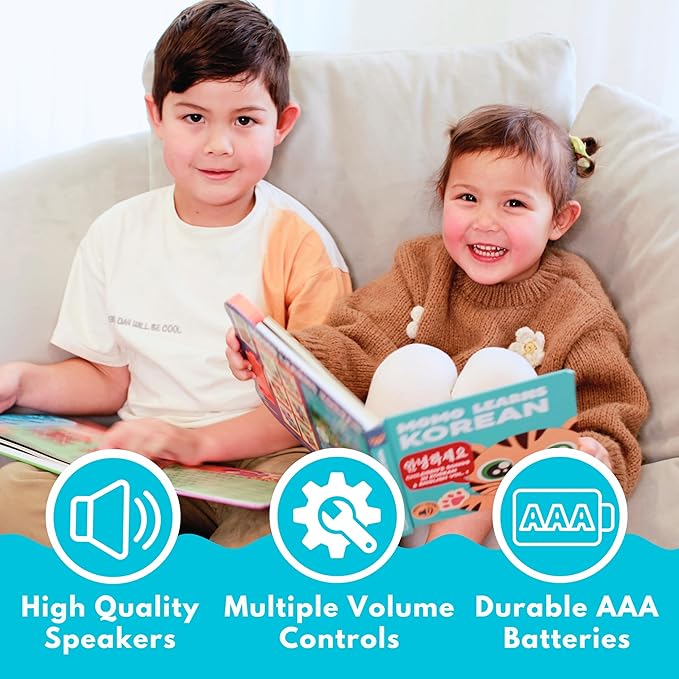 - MOMO LEARNS KOREAN is the perfect interactive Korean-English bilingual baby book and durable board book for toddlers, preschoolers, and infants aged 0โ3, 6-12 months and learning learners. It features engaging sound, music, and fun first words to help kids learn the Korean alphabet (Hangul), basic vocabulary, and language games. Safe, educational, and easy-to-use, it's an essential learning toy and ideal bilingual gift for beginners; batteries included with easy volume controls and mute.