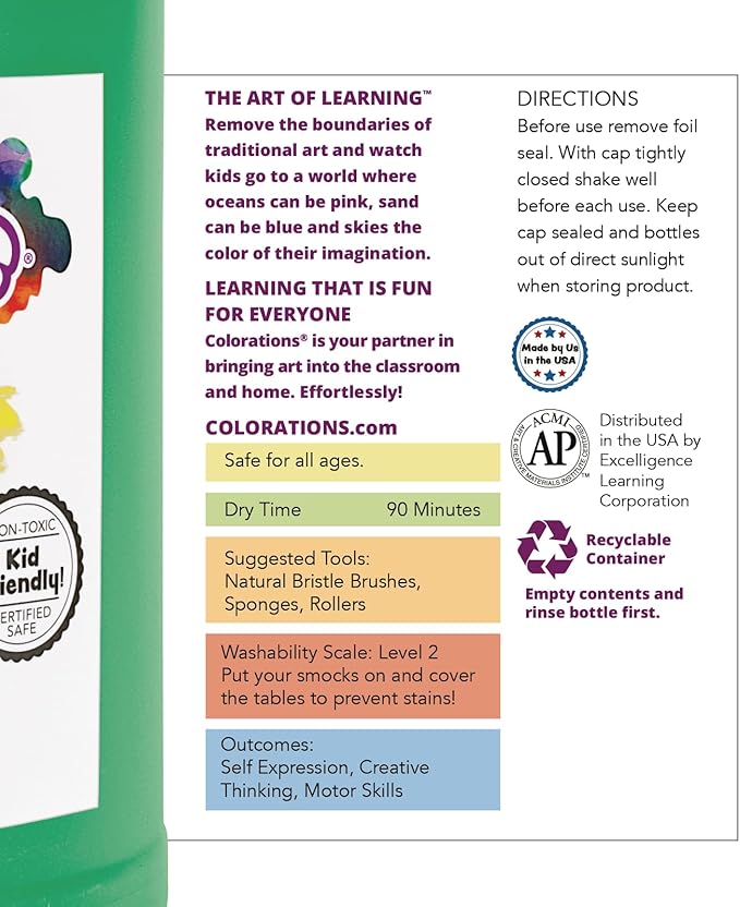 - Ideal For Art Rooms: Creamy, easy-to-spread paints are the perfect addition to art rooms and creative supply cabinets. Stock up on large bottles of tempera so students have plenty for their projects.