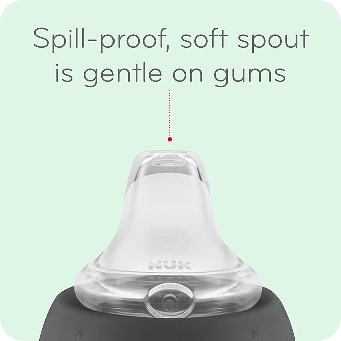 - Spill-proof, soft spout is designed to be gentle on gums while teaching baby to drink from a spout. Liquids flow easily when sipped