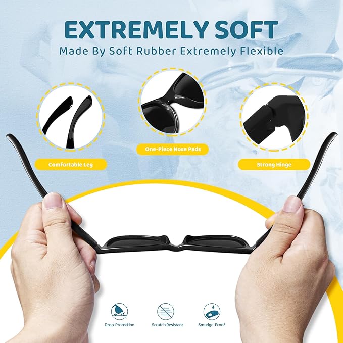 - SAFE AND COMFORTABL - RIVBOS sunglasses frame is made of soft silicone and unbreakable material, which is not easy to break, very durable, and also provides a comfortable wearing experience.