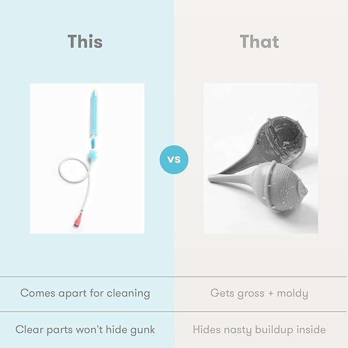 - NATURAL SALINE SPRAY: The included saline nasal spray (0.68 fl oz) is formulated with just salt and water. It contains no alcohol, medicine, or other additives, so it's safe and effective for small noses.