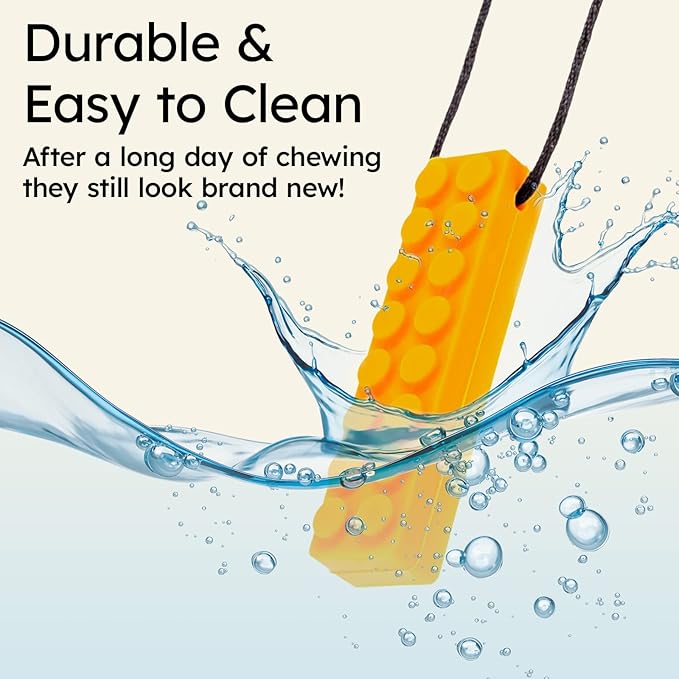 - Extra Bonus cord + Clasp Included β Each chew tool comes with a cord and breakaway clasp for safety purposes. Additionally, each pack of 3 comes with an additional cord and clasp in case one of the cords is accidentally broken. Cord and Clasp are not for chewing, children should be reminded to chew only on the Silicone brick