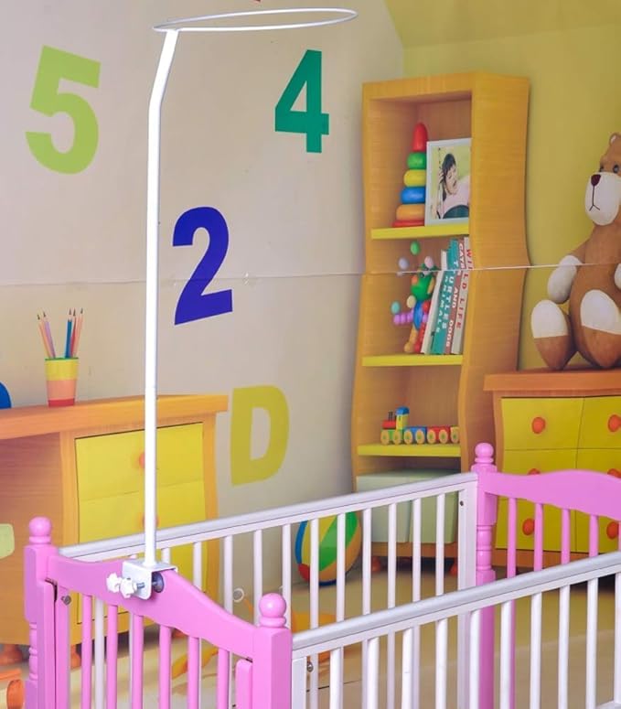 CdyBox Crib Canopy Holder Universal Metal Adjustable Clip-On Stand Bracket for Crib Cot Bed Mosquito Net(White, Stand only)