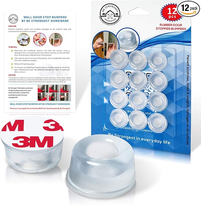 - CLEAR HARD DOOR PROTECTOR SELF ADHESIVE PADS: Install them immediately. First clean the wall with a soft cloth. Simply remove the bumper from the packaging, stick it to a clean wall and hold firmly for a minute (press to create a solid durable hold). YOU CAN USE THE SCREW IN DIFFICULT PLACES. If your wall is cracked, the surface area is not flat, or the adhesive simply wonโt stick, simply insert a SCREW into the recessed center of the bumper for a secure fit.