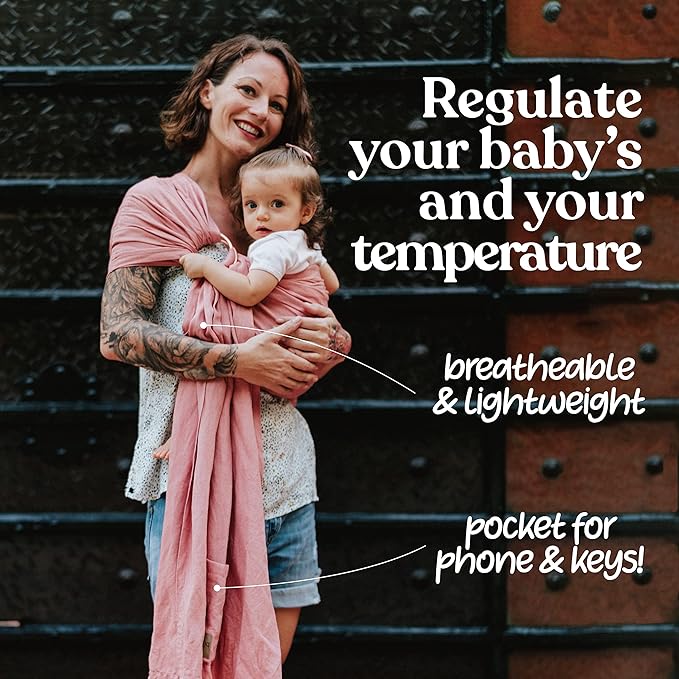 - โ REGULATES TEMPERATURE BETTER THAN A WRAP: Not all young babies can control their temperature well & can easily overheat in a wrap. Our ring sling baby carrier will keep you & your precious baby comfortable yet cool & wonโt wrinkle your clothes as much either! The tail fabric can double as a nursing cover, so you can breastfeed your baby privately while on the go.