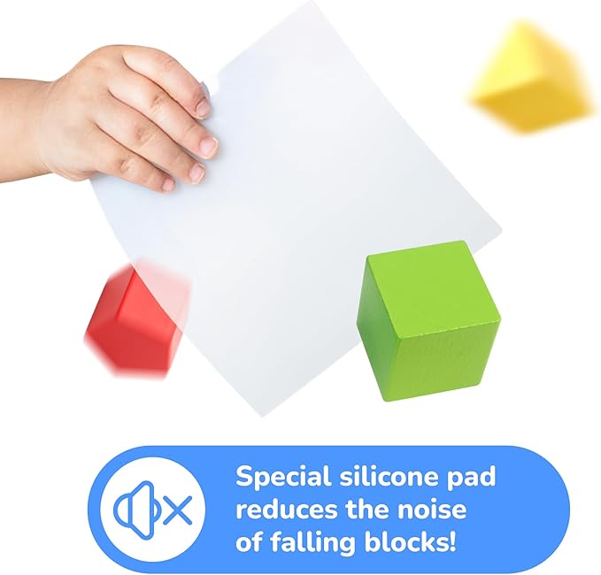 - Noise Elimination - Introducing the Silicone Pad that eliminates noise! The strategically positioned small pad allows for no disruptive noises caused by falling blocks in shape sorting toys.