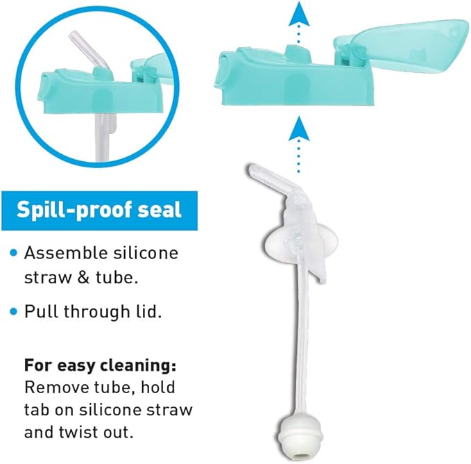 - Easy to assemble and clean (cleaning straw included); make sure the straw is snapped in place after cleaning (rubber collar should be visible)
