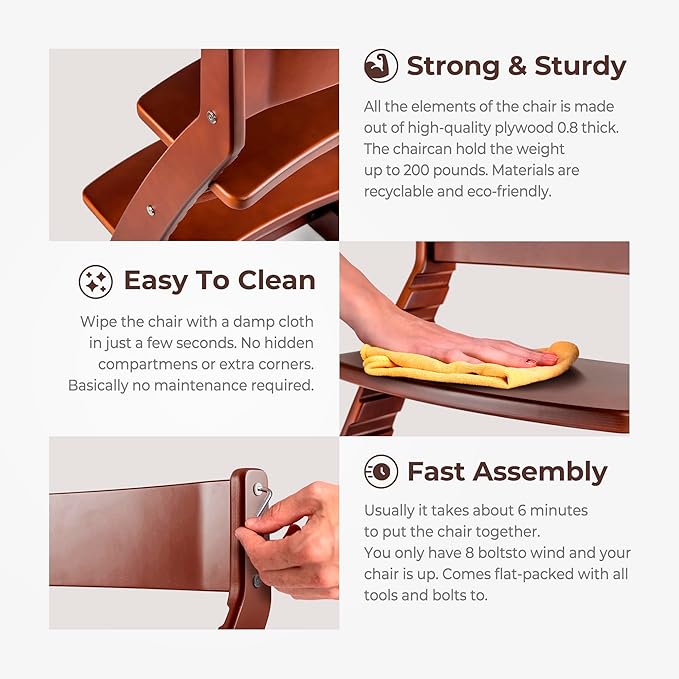 - ✔️ A ONE-TIME INVESTMENT IN QUALITY: Forget plastic chairs that last a single phase. The Fornel is crafted from solid wood and grows with your child, safely supporting them from their toddler years all the way up to 200 lbs. It's not just a high chair; it's a future heirloom.