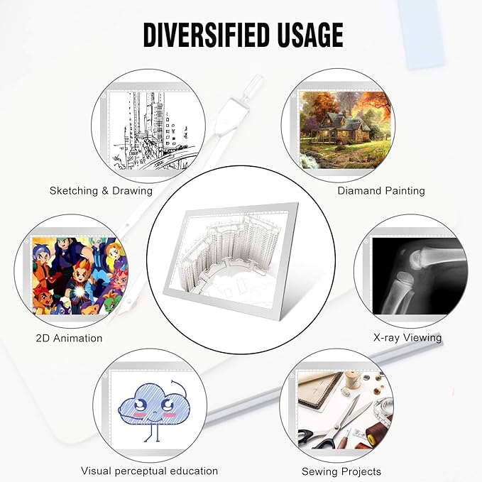 - EYESIGHT-PROTECTIVE DESIGN -- Light tracing box with energy efficient flicker-free LED lamps, provides a perfectly even illustrated surface.
