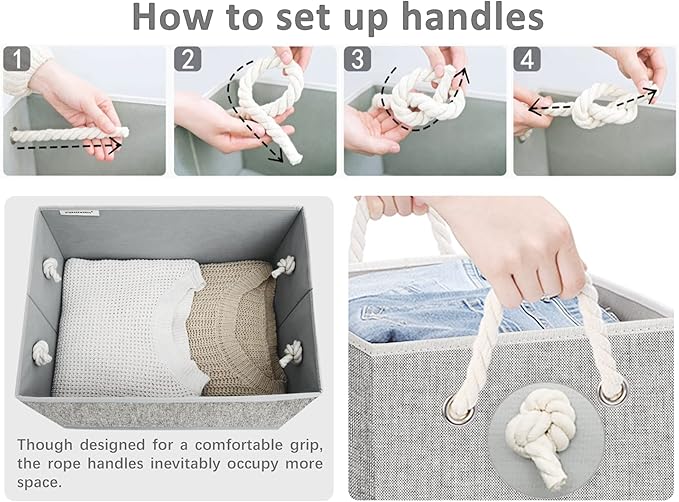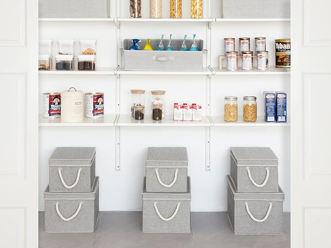 StorageWorks Storage Bins with Lids, Decorative Storage Boxes with Lid and Soft Rope Handles, Foldable Storage Baskets for Closet, Shelves, Stackable, Gray, Jumbo, 3-Pack