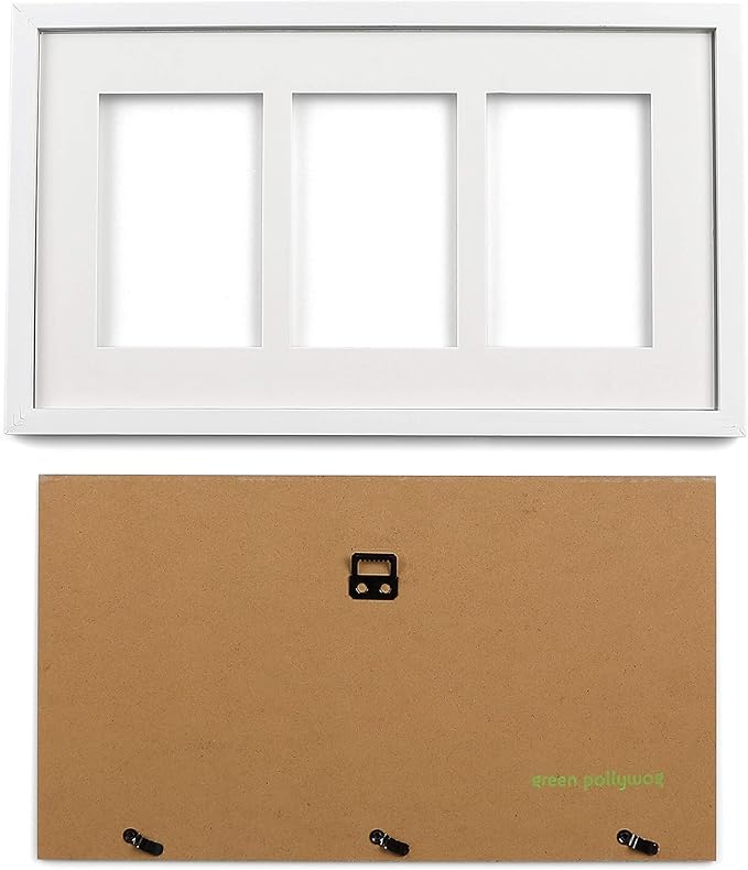 - Perfectly sized with three 4" x 6" slots for one handprint, one footprint and one photo! The lovely snow white mat is acid-free so it will not damage your treasured memories. The durable lightweight design makes hanging this frame a snap and no special anchors are required.