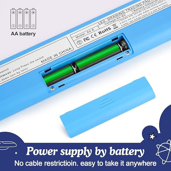 - ❤IMAGE LIGHT UP TRACING PAD: 1 Tracing Pad with Brightness Control,10 Tracing Sheets (4 AA Batteries Required. Not included) and Two Clips.We provide a one-year warranty.