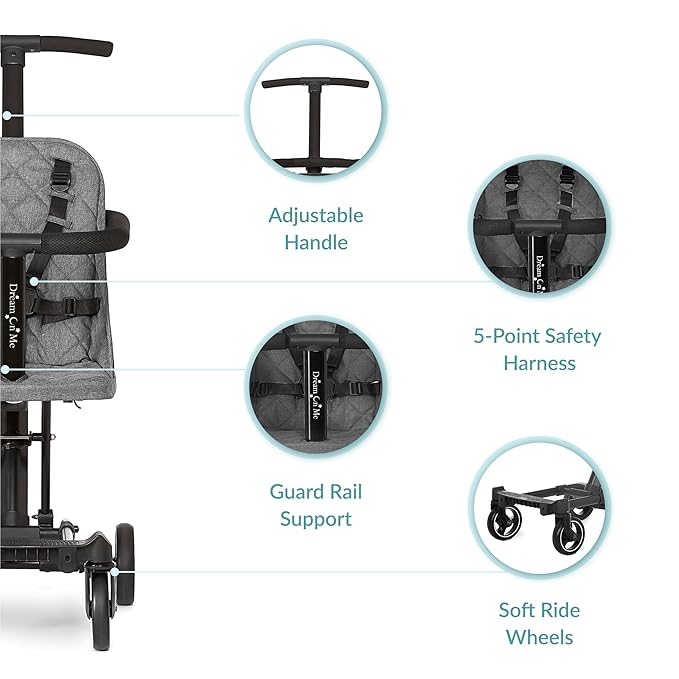 Dream On Me Lightweight And Compact Coast Rider Stroller With One Hand Easy Fold, Adjustable Handles And Soft Ride Wheels, Grey
