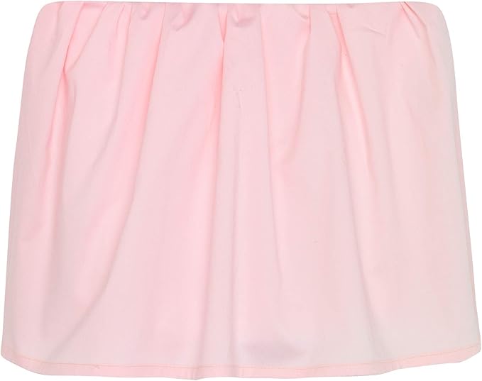 - The solid pink crib skirt is shirred for a more luxury/designer style