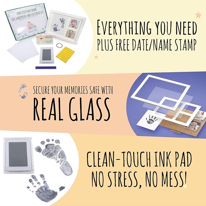 - Our superior quality with a bonus - Our quality is based on what other newborn footprint kits couldn't accomplish. Your frame will be made from durable wood with real glass cover, so your memories are completely safe. You’ll get a 100% baby safe non-toxic ink pad which will able to capture life-like details, so you’ll be able to see every line of your child’s hands and feet. That’s not all… enjoy our Alphabet stamp so you can display your child's name and birth date.