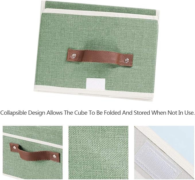 Lucky Monet Storage Bins Boxes with Lids 2 Pack Decorative Storage Boxes Collapsible Fabric Storage Basket Containers Lidded Storage Cube for Organizing Closet Home Office, 10"x 8"x 7" (Green)