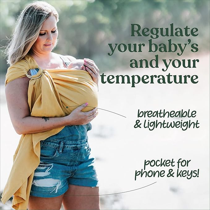 - โ REGULATES TEMPERATURE BETTER THAN A WRAP: Not all young babies can control their temperature well & can easily overheat in a wrap. Our ring sling baby carrier will keep you & your precious baby comfortable yet cool & wonโt wrinkle your clothes as much either! The tail fabric can double as a nursing cover, so you can breastfeed your baby privately while on the go.