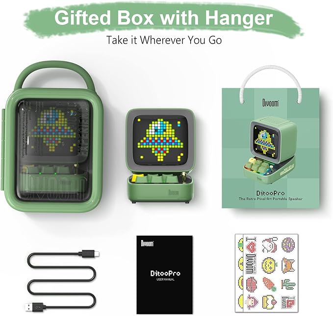 Divoom Ditoo Programmable Pixel Art LED-Bluetooth-Speaker Showing-Clock Emoji DIY Design for Home Wedding Party Decoration with Wireless App Control (Green)