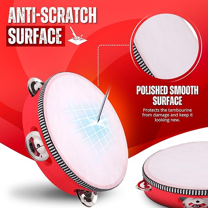 - Elevate your Music: Our tambourines for adults and kids have 8 pairs of single-row metal jingles that produce a crisp, clear sound; the tambourine is one of the musical instruments that adds depth and complexity to your music