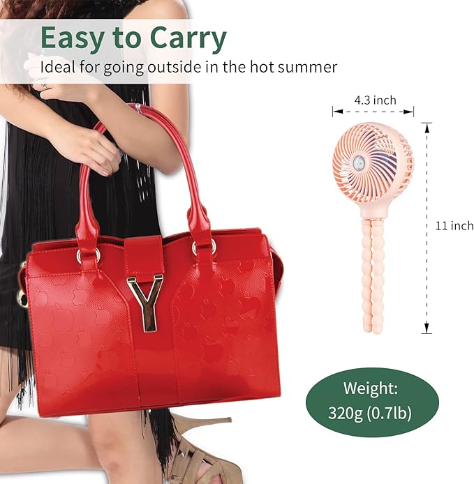 snawowo Mini Handheld Personal Portable Fan, Baby Stroller Fan, Car Seat USB or Battery Powered, with Flexible Tripod Clip on Student Bed Desk Bike Crib Treadmill Camping Traveling(Pink)