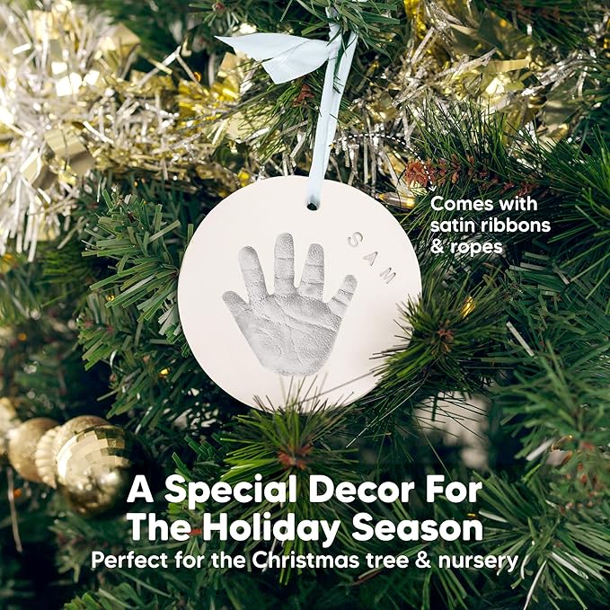 - Creative Hanging Baby Ornament - Craft a unique collection of cherished keepsakes with our baby handprint kit and baby foot print kit. and make it a delightful surprise for your guests. Display it on walls or Christmas tree to add a heartfelt touch on special occasions.