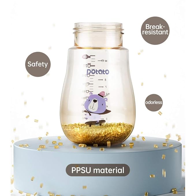 - PPSU material: This product is made of PPSU. The color of PPSU is light yellow and has the characteristics of BPA free, strong molecular stability and high temperature resistance. Compared with the bottle made of PP, the PPSU baby bottle is more sturdy, will not be broken after several falls, and can withstand repeated high temperature sterilization for a long time.
