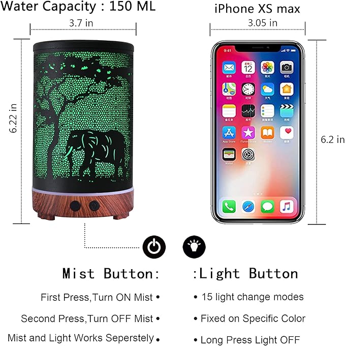 - 【Safety Design & Auto Shut Off 】 Aromatherapy Essential Oil Diffuser will automatically stop working and keep your unit from being damaged as soon as its water content has been used up.Easy to set up and all the functions are simple to operate, even a child could figure it out.the aroma oil diffuser’s cover can be effortlessly removed, easy to fill with water and a few drops of essential oil, helping you readily reap aromatherapy benefits.