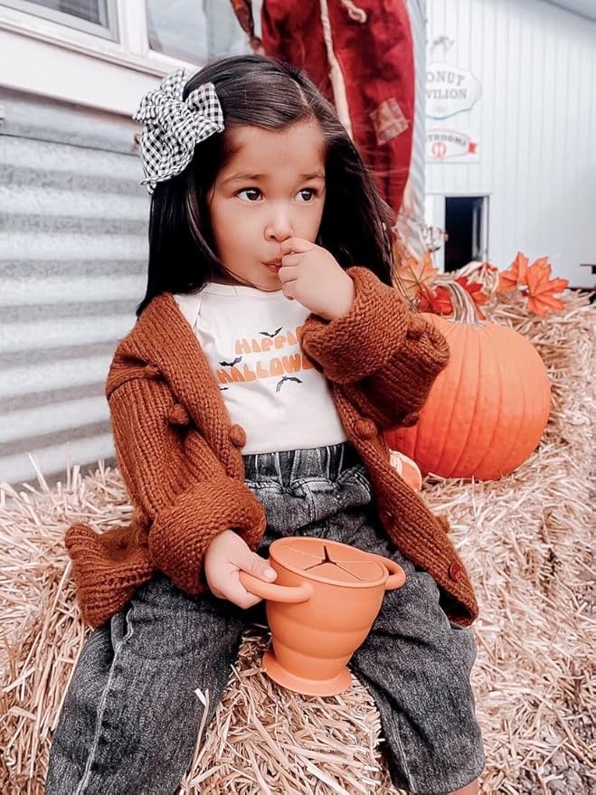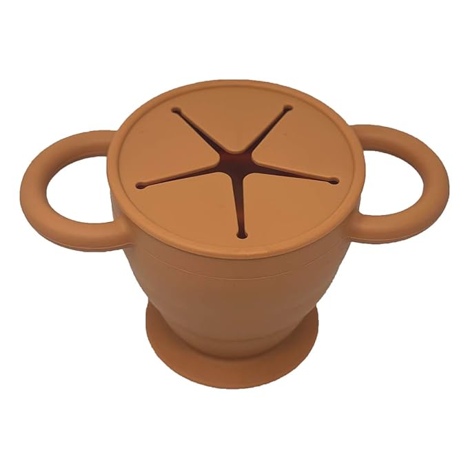 BraveJusticeKidsCo | Snack Attack II Snack Cup | Collapsible Silicone Snack Container | Toddler and Baby Snack Catcher Lid (Honey Ginger)