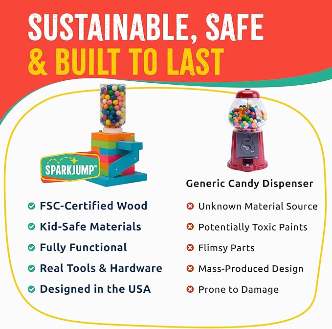 DIY Wood Building Kits, STEM Woodworking Kit for Kids, Creative Fun Craft Projects, Great Gift for Boys & Girls (Candy Dispenser, 1-Pack)