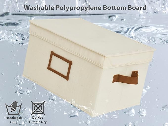 StorageWorks Large Storage Bins with Lids, Decorative Storage Boxes with Lid and PU Handles, Foldable Storage Baskets for Closet, Shelves, Stackable, Ivory, 3-Pack