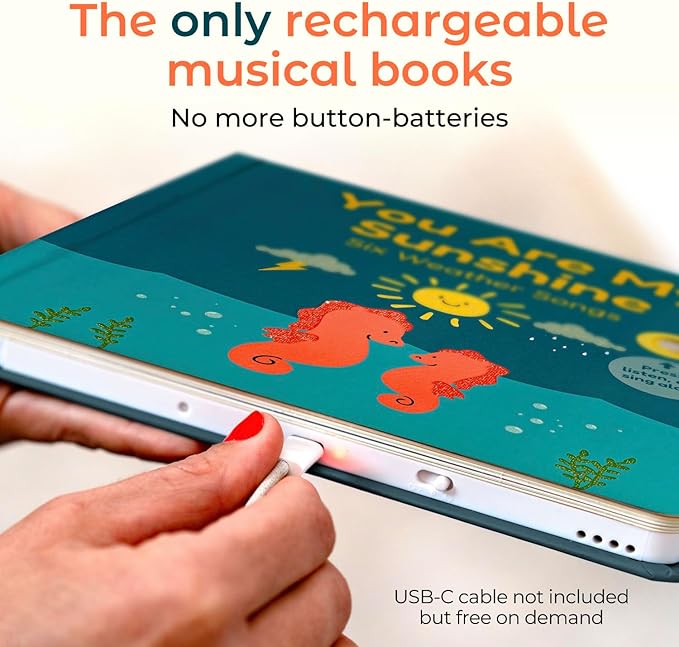 - USB-C Rechargeable: Our toddler books ages 1-3, like this USB-C rechargeable Wheels on the Bus, offer endless fun without the battery hassle. They are perfect musical toys for toddlers 1-3 and great interactive books for 1 year olds!
