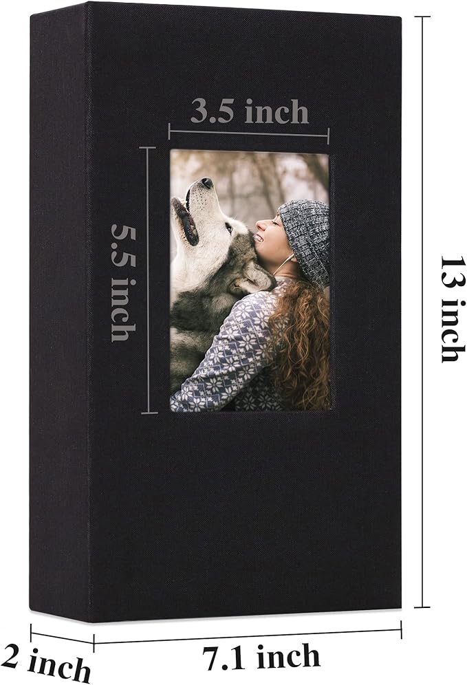 - Perfect Size & Capacity: Length 13 x Width 7.1 x Thick 2 inches with 50 sheets / 100 pages, Bi-Directional pockets hold 3 horizontal 4x6 photos per page and insert 300 photos totally. Photos fit snugly in the pockets, not easy slipping out