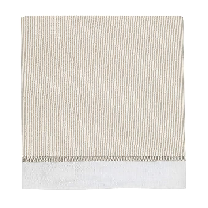 - Cotton mini stripe 4-sided crib skirt with white border has 14” drop