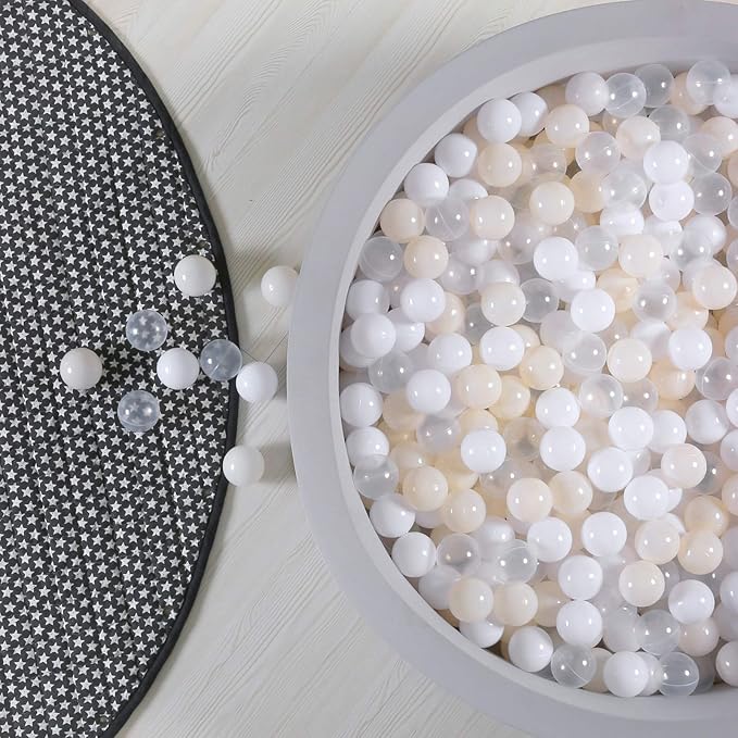 GOGOSO Ball Pit Balls Plastic Playballs for Baby Toddlers Kids Boys Girls Playhouse Decor Play Pool Fun Phthalate-Free BPA-Free Bath Toy White Beige Transparent,100 Balls