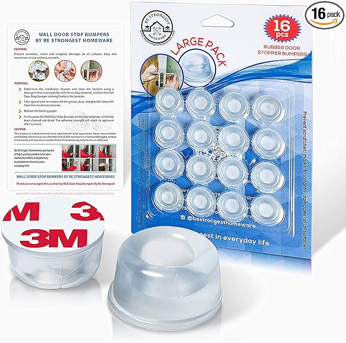 - SOLVE YOUR CRASHING DOORKNOB PROBLEM: Weโre confident that door stoppers will solve your crashing doorknob problem. If youโre not 100% thrilled with how the small door handle bumper works to protect your walls, let us know and we make it right! No doubt you can think of many situations where a headboard stopper or door protector like this could be a lifesaver. Click Buy Now, and weโll send you 16 of these clear, self-adhesive, simple-setup, door stopper rubber bumpers today!