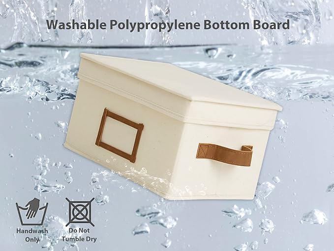 StorageWorks Storage Bins with Lids, Decorative Storage Boxes with Lid and PU Handles, Foldable Storage Baskets for Closet, Shelves, Stackable, Ivory, Medium, 3-Pack