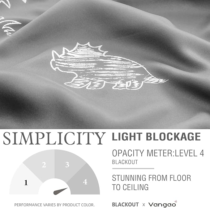 Vangao Kids Curtains Grey Blackout Dinosaur Curtains for Boys Kids Nursery Girls Room Silver Dino Foil Print Thermal Insulated Drapes Grommet Top Window Treatments 84 Inches Length 2 Panels