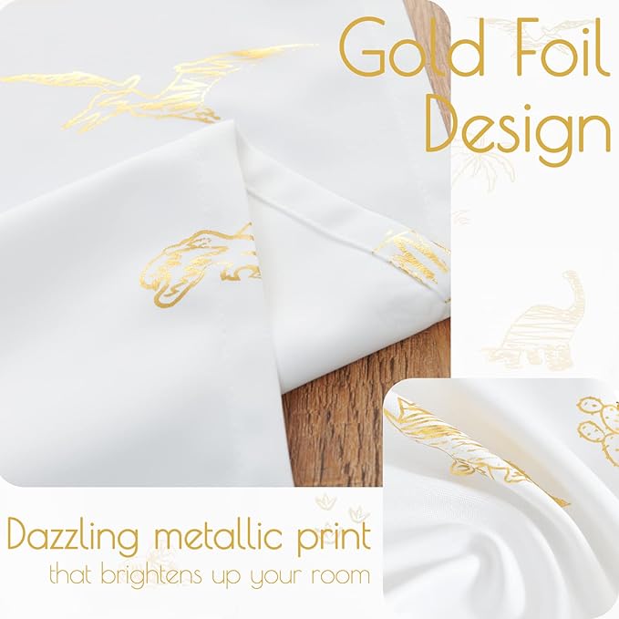 Vangao Kids Curtains White Drapes Dinosaur Curtains for Boys Kids Nursery Girls Room Golden Dino Foil Print Light Filtering Grommet Top Window Drapes 84 Inches Length 2 Panels