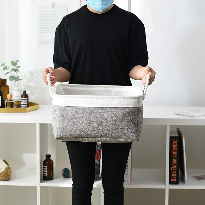 - HANDMADE STICHED & STURDY - TheWarmHome closet organizer outside fabric is made of more linen & thicken Environmental EVA, and used a lining material for the inside, Semi handmade stitched. Sturdy metal rod frame around the top keep the basket shape. Strong seams and rope side handles, make this storage baskets are sturdy and easy to grab. Stand up great on their own even unfilled and ensure a greater product lifespan.