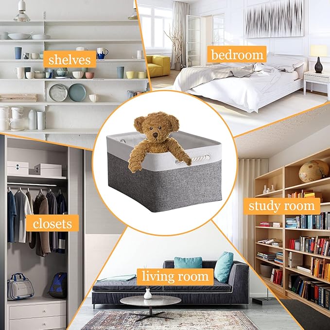 - LARGE STORAGE BIN & PROFESSIONALLY & PRACTICAL - 15.7L×11.8W×8.3H, can be used as storage baskets for shelves,closet storage bins, linen closet organizer,nursery basket storage,laundry baskets, bathroom towel storage,also can organizing baby Stuff,clothing, kid’s ,pet products, laundry, towel, bedsheet,sport gears,suitable use in bedroom, living room,study room,rest room,bathroom, kitchen,office,shelf,closet and cabinets. excellent choice for keeping your space nice,tidy and organized