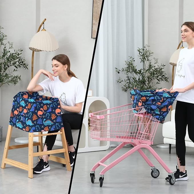 - CUTE DINOSAUR PRINT & MULTIPURPOSE USE: Enjoy a multitude of purposes for this carseat canopy such as car seat covers also be used as a breastfeeding cover, shopping cart cover, stroller cover, high chair cover and more!