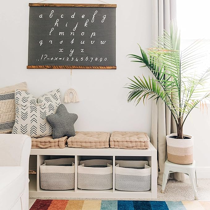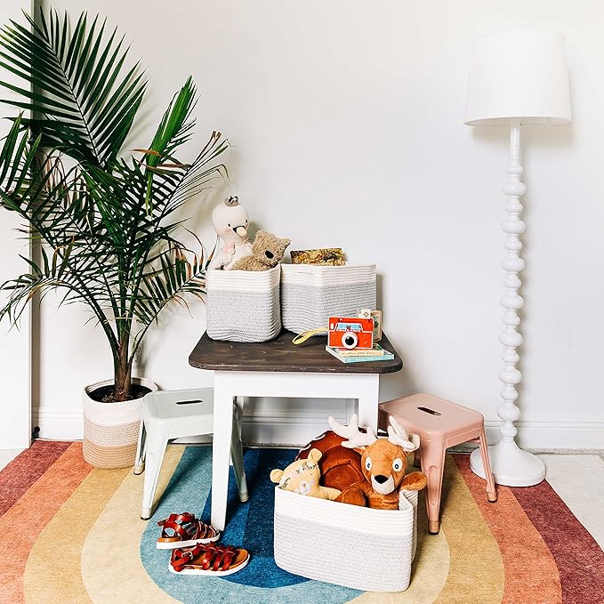 - Discrete, Built-In Carry Handles – These fabric rope baskets for storage also feature slim hand holds built right into the sides of each round basket for a seamless look that’s also functional. Perfect for picking up toys or carrying items around the house.