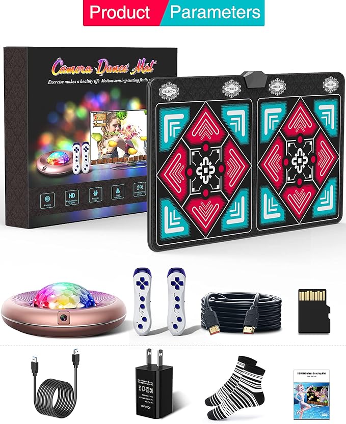 - Wireless Dance Pad with Gaming Integration:🎵 Powered by a brand-new cutting-edge chip, it can connect to TVs, computers, and projectors with standard HDMI input ports. Experience single-player, two-player, and multi-key/hand dance support, fully integrated with motion-sensing games, 3D camera challenges, and yoga programs. Enjoy 144 music tracks, 72 interactive dance pad games, 9 camera-based adventures, 3 yoga modes, and 3 running games—all optimized for home entertainment and fitness!
