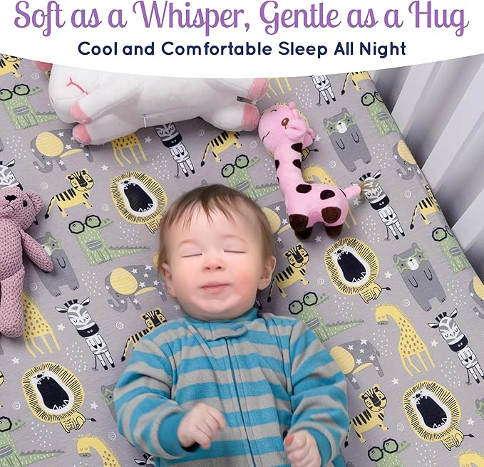 - 🌚FUN & CHARMING DESIGN - Our crib mattress sheets features an adorable Safari Jungle pattern. This charming design brings the calming essence of the sea into your baby boy nursery.