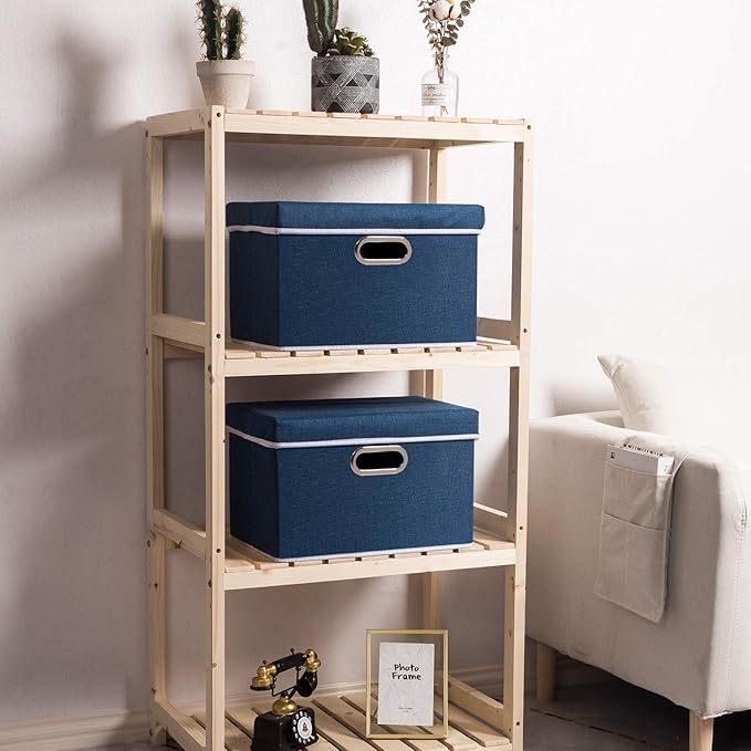 - 【Fashionable Bins】Designed to match interior decor and style in any room in the home or office. Enjoy the relaxing ambiance of the soft royal blue and natural white neutral color scheme.
