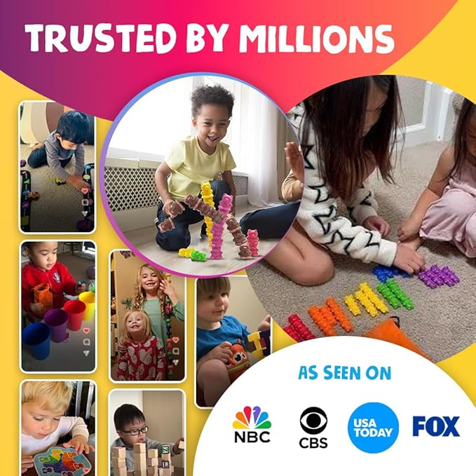 - SCHOOL READINESS: The tumbling counting bears for toddlers can be used to learn colors, sort, and stack. Preschoolers can use these teddy bear counters for EARLY STEM ACTIVITIES to learn basic math skills including graphing, addition, subtraction, skip counting, nonstandard measurements, one-to-one correspondence, counting to 60, comparison, making 10, sequencing, matching, patterning and grouping.