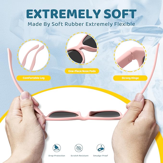 - SAFE AND COMFORTABL - RIVBOS sunglasses frame is made of soft silicone and unbreakable material, which is not easy to break, very durable, and also provides a comfortable wearing experience.