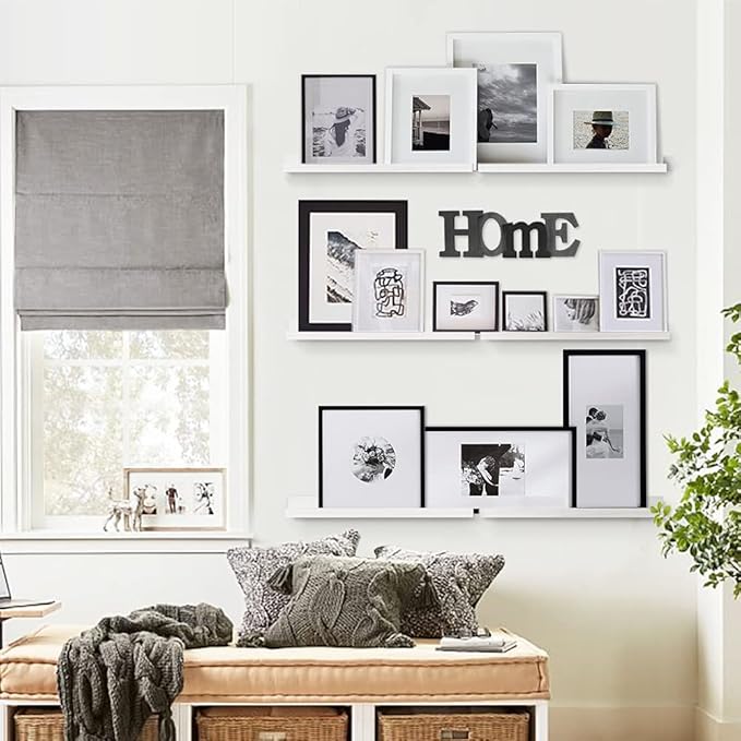 - 【Easy Installation & Breeze Disassembly】These modern & versatile white floating shelves for wall come assembled in sets of 4. Easy to install those picture shelves when open carton box to hang them following instuction manual. When disassembling, just remove screws.