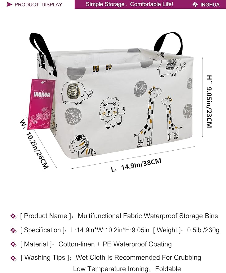 Rectangular Storage Basket Fabric Organizer Bin for Toys,Books,Clothes,Gifts,Pets-Perfect for Home,Office,Nursery,Dorm,Shelf(Rec-Animals)
